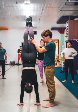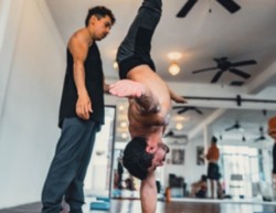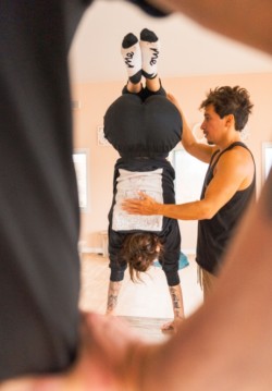 The intensive training is open to all levels, from complete beginners to professional handbalancers